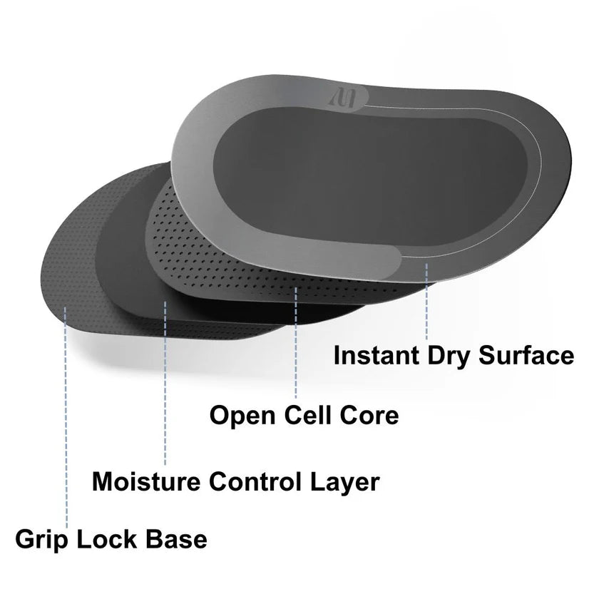 Most mats absorb water and hold it — leading to dampness, odors, and bacteria. The DeluxeDry™ Mat uses a 4-layer quick-dry design that absorbs water fast, dries quickly, resists mold, and stays firmly in place.